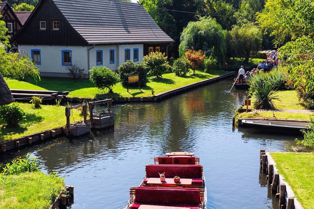 En voiture, à pied ou en transports en commun : voilà généralement nos moyens de transport quotidiens pour aller d’un point A à un point B. Mais ne serait-il pas plus agréable de glisser sur l’eau, de recevoir votre courrier par bateau et même de jeter vos ordures de la même manière ? Vous pensez que cela ressemble plutôt à un conte vénitien? Eh bien, vous vous trompez, car ce scénario italien est plus proche que vous ne le pensez. À seulement 1h30 de Berlin se cache un petit village dans la forêt de la Spree, accessible uniquement par des canaux. On parle du « village lacustre » de Lehde, qui appartient à la ville de Lübbenau et qui est considéré comme l’un des plus beaux et des plus authentiques villages de la région.
