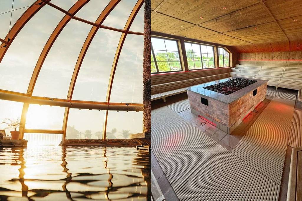 Abgesehen davon bietet die Kristall Therme Whirlpool-Effekte, Massagedüsen, Sprudelliegen und Wasserfälle, die für pures Wohlbefinden sorgen. Insgesamt stehen euch 8 Saunen in verschiedenen Themenwelten mit Temperaturen zwischen 70 °C und 100 °C zur Verfügung. Aufguss-Zeremonien, Dampfbad, Hamam und spezielle Sauna-Events gehören selbstverständlich ebenfalls dazu.